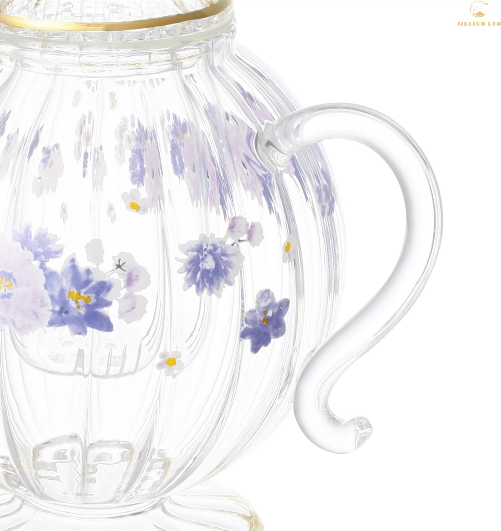 Elegant ruffled glassware, embellished with a floral pattern and accented with a gold rim for an elegant coffee experience.